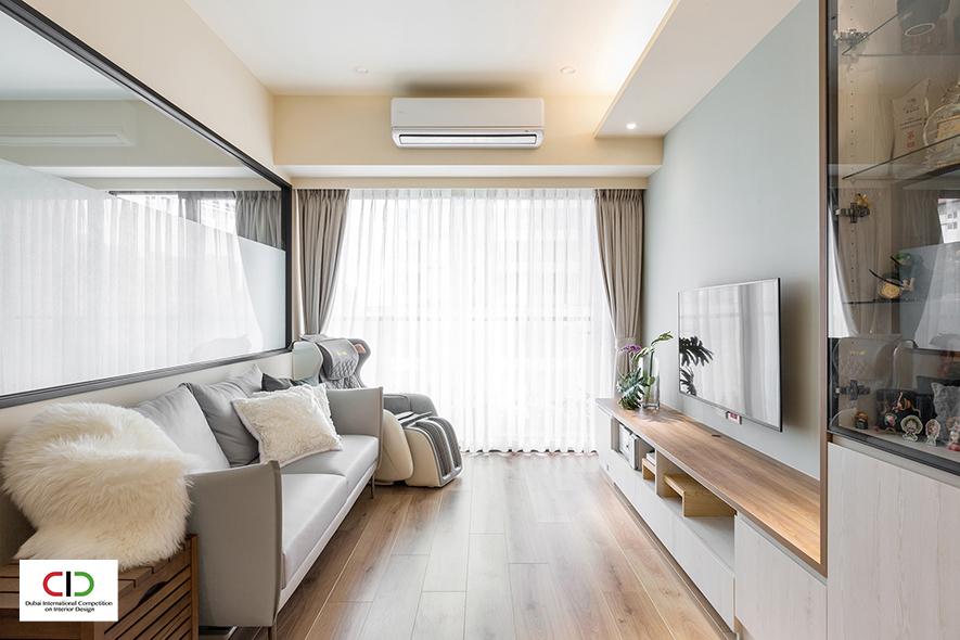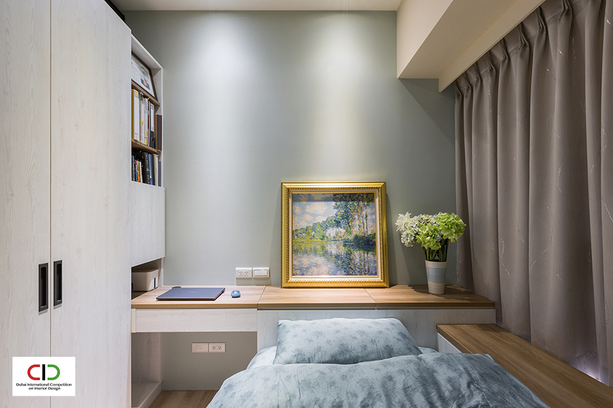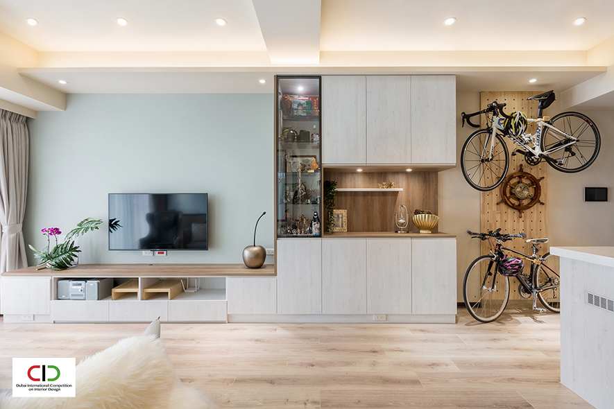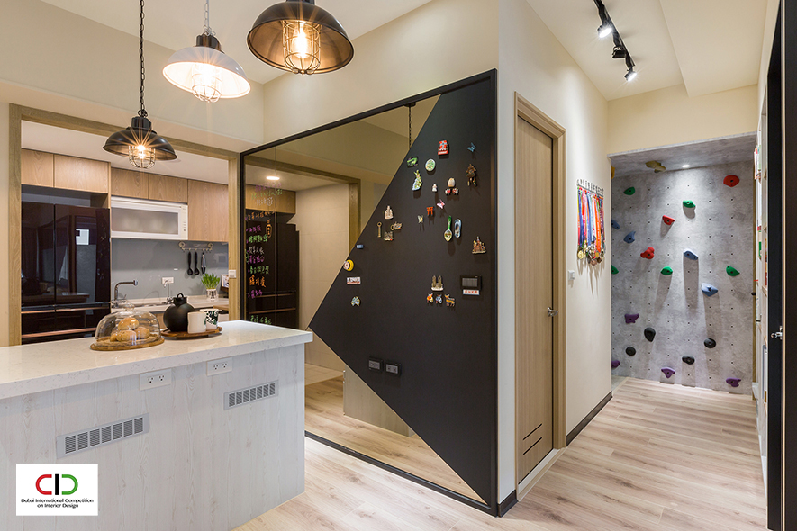 艾美幸福設計 許捷甯 設計總監 選用柔和的曙光青與奶茶色,搭襯溫潤木質、黑色磁鐵牆及鐵件燈具,打造出融匯北歐調性與輕工業風的溫馨作品《酷玩人生》,其中更規劃健身房、結合廊道立面設計的攀岩牆,讓業主在家亦可享受運動的樂趣,個性十足的特色家宅,於2022賽事中深受評審好評,榮獲銅獎獎項,使品牌形象耀眼國際!