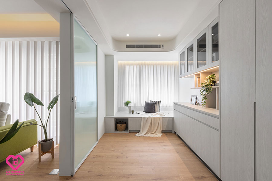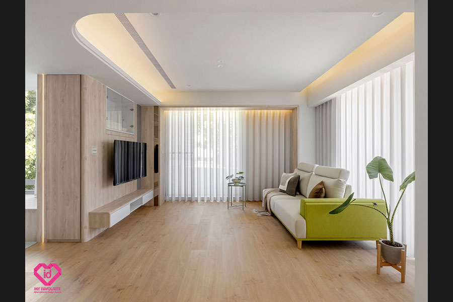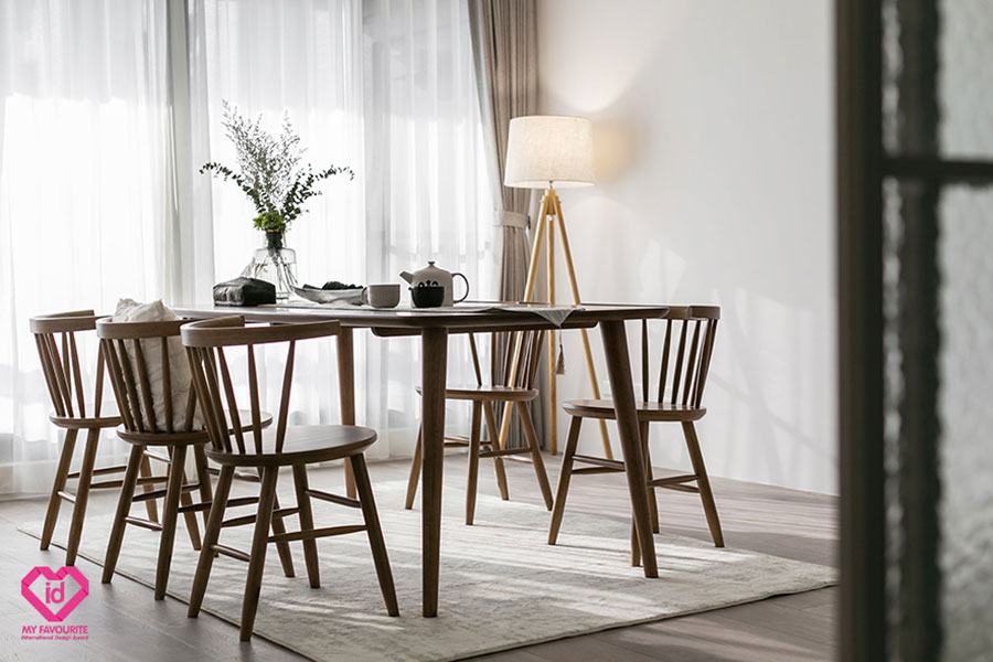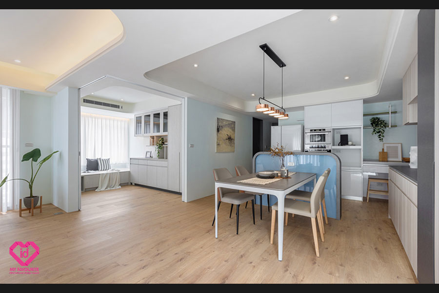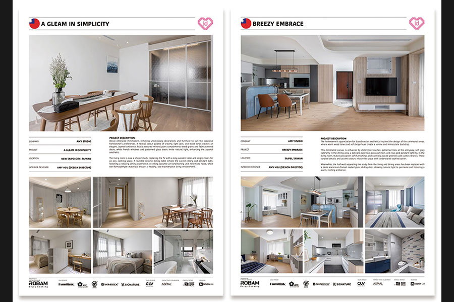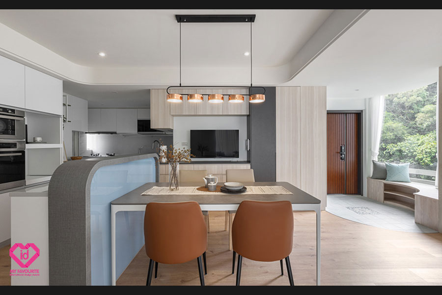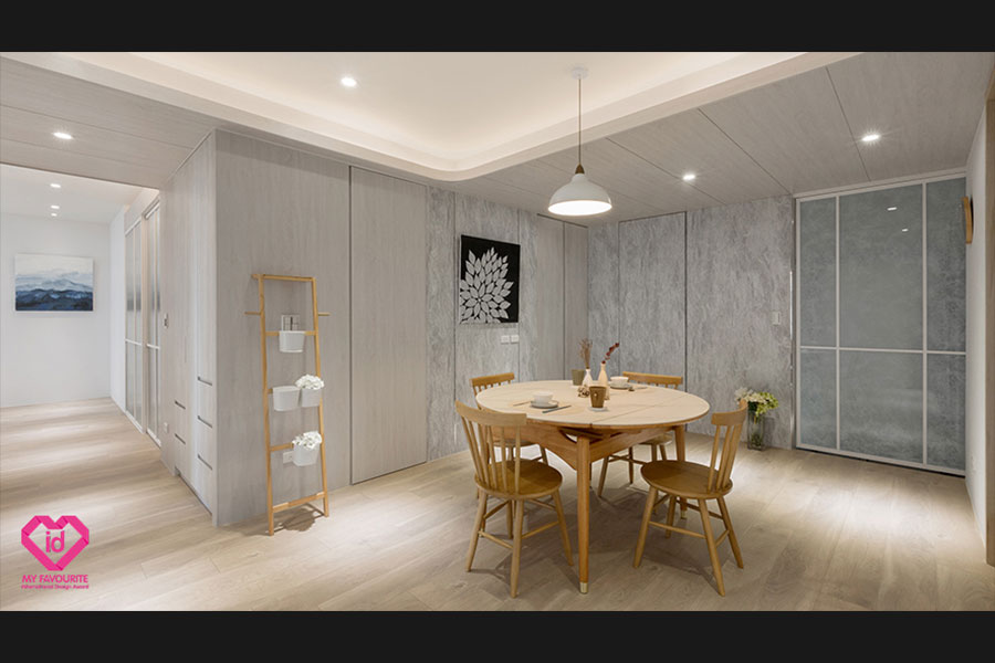 回應屋主對極簡風範的鍾情,艾美幸福設計 設計總監 許捷甯 以減法設計除去過多裝潢,跳脫客廳設置茶几、沙發、電視的傳統框架,為《瀲光雅寂》之公區佈置明亮溫馨的家庭閱讀天地;而作品《清煦》鋪敘交織米白及淺木等輕淺色系,其間遍布象徵業主一家美滿圓融的柔潤曲弧,釀出清朗和柔的宜人北歐調性。兩件蘊含溫情暖意的柔煦家宅,齊獲本屆賽事住宅空間類入圍榮譽!