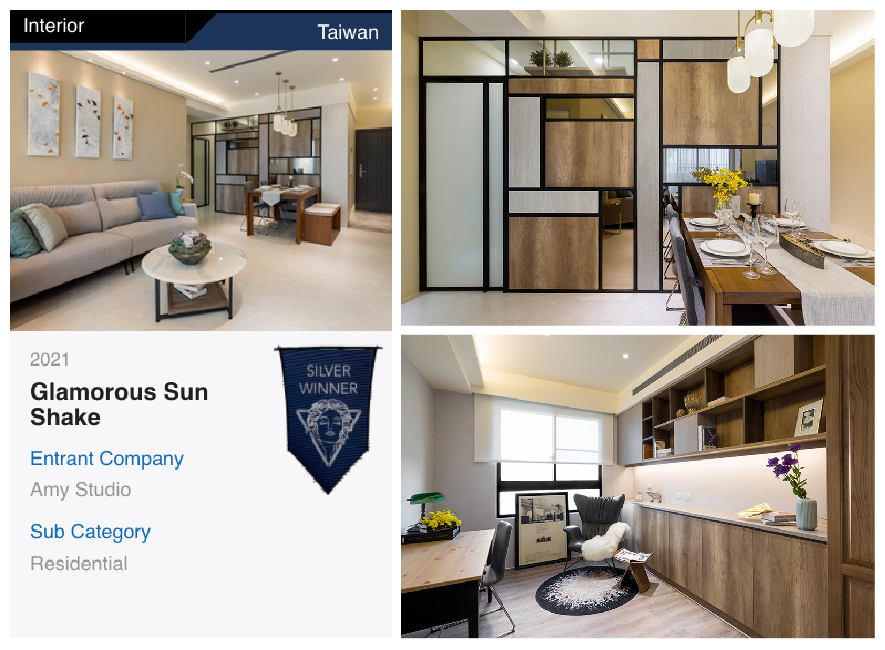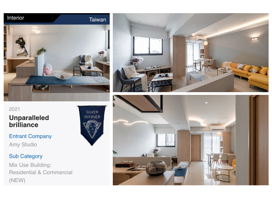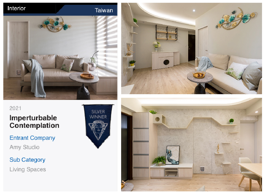 由簡約舒適為出發點,艾美幸福設計 許捷甯 設計總監 以結合藝術元素的北歐家宅《漫步光廊》,與滿足夫妻二人和愛貓溫馨生活的《輕思・享漫》,展現為居者量身打造幸福空間的貼心設計,雙雙獲得「居住空間類」銀獎;而另一居家辦公作品《璨光》,則展現合宜配置的格局規劃,流露禪意十足的日式格調,獲得評審青睞,拿下「複合式空間類」銀獎榮耀,如此亮眼的佳績,為品牌創下嶄新的國際里程碑!