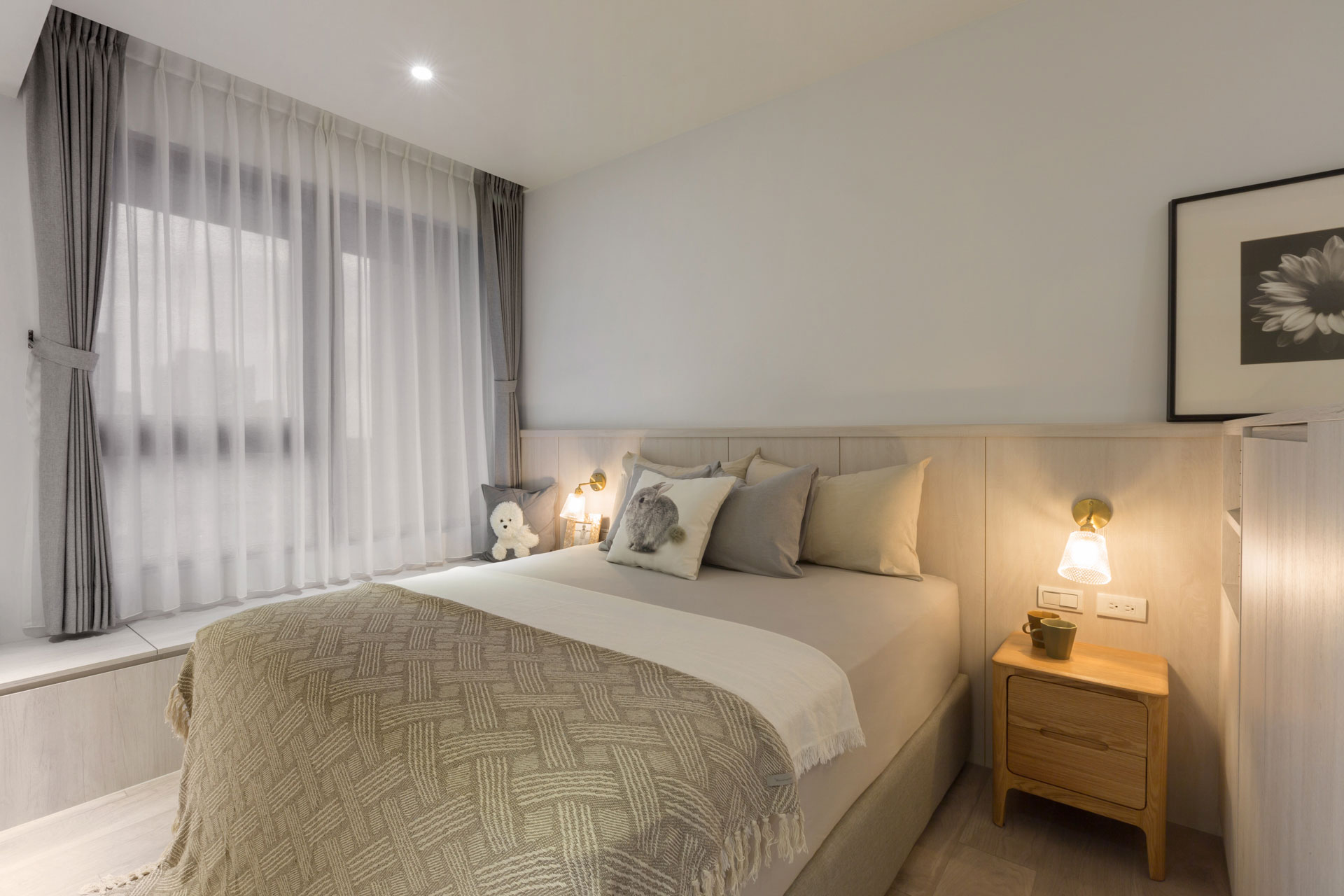 孩子們的房間內都在窗邊坐上了臥榻區域,方便儲藏小物與擺放小玩具戰利品。臥區的床邊統一使用日式傳統薩摩切子水晶床頭燈,讓大家在不同的房間內看著同樣的溫暖入睡。若要說在一切接近的風格中有別有洞天之處,父母在自己的主衛浴室採用日式飯店的純白恬靜風格,有每日泡澡習慣的日籍女主,比較起湯屋慣用的岩磚,更喜歡獨立無縫一體成型的超薄邊陶瓷浴缸。170公分長的蛋型設計,在享用日本各溫泉精華時,讓她出浴時有種破繭破蛋而出的振奮舒暢感。在黑夜中泡澡,享受作為交屋禮的名單中,來自米蘭的Locherber香氛,這是攝影中看不到的秘密武器,閉上眼用嗅覺坐擁聖加崙群山與湖泊的天然水霧氣息。眺望28層樓高的夜景,這是當恢復最原始身分,純粹自身的自在。